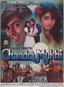 Chandra Mukhi is a 1993 Indian Hindi-language fantasy drama film directed by Debaloy Dey starring Sridevi, Salman Khan, Mohnish Behl and Pran.[1][2][3][4][5]