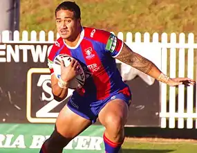 In 2013, he moved on to the Knights' New South Wales Cup team.[9] On 16 October 2013, he re-signed with the Newcastle club on a one-year contract,[10] later extending it by another year in 2014.[11] On 9 July 2014, he played for the New South Wales Residents against the Queensland Residents and scored two tries.[12]