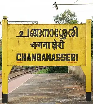 Changanasseri railway station (code: CGY) is a railway station in Kottayam district, Kerala and falls under the Thiruvananthapuram railway division of the Southern Railway zone, Indian Railways.[1] Changanassery is the second largest railway station in Kottayam district.[2] It is an NSG 4 category station. There is a chance to halt few more trains in Changanacherry due to the increase in the number of the rushing passengers in Kottayam and Thiruvalla station from Kanjirappally, Changanassery and Kuttanad regions.[3]