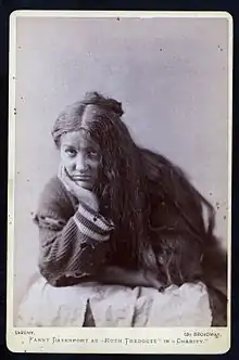 Charity lost money and closed on 14 March.[13] Its failure was disappointing to Gilbert, particularly after the success of his earlier "fairy comedies" at the Haymarket, and he grumbled that "pieces written with anything like an earnest purpose seldom seem to succeed."[12] Charity did have a good provincial tour, and a production at the Fifth Avenue Theatre in New York, starring Fanny Davenport and Ada Dyas as Ruth.[14][15] Augustin Daly's production at the Fifth Avenue Theatre in 1880 was not authorised by the author, and Gilbert was angry that Daly "debased" his play, adding characters and revising the text.[16] The American courts would not issue an injunction to prohibit this, since British copyright was unenforceable in America at that time (as Gilbert and Sullivan would experience with H.M.S. Pinafore and their later hits).[14]
