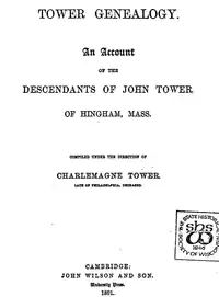 - 1 2 Tower Genealogy: An Account of the Descendants of John Tower of Hingham, Massachusetts, Prepared Under the Direction of Charlemagne Tower, Late of Philadelphia, Deceased, John Wilson and Son, Cambridge, Mass., 1891
