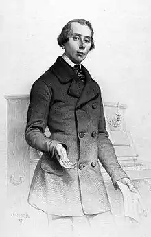 Sainte-Foy made his debut at the Opéra-Comique in 1840 and became one of its most popular tenors, not so much for the quality of his voice but for his ability as a comic actor.[2] It was said of him that "the Opéra-Comique without Sainte-Foy is like dinner without wine."[3] In 1845 Jean-Pierre Dantan made a sculptural caricature of him as Bertrand in Monsigny's Le déserteur, one of his signature roles.[4] During the course of his career he created numerous character roles including Ali-Bajou in Thomas's Le caïd and Patachon in Offenbach's Les deux aveugles.[5] He retained a great affection for his native town and returned to Vitry every year to give a charity performance in the small theatre there. Sainte-Foy died in Paris at the age of 60.[1]