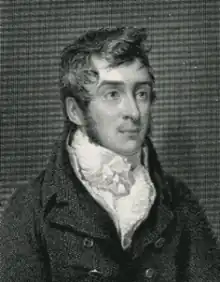 In May 1821 he went to Devon to make drawings for Daniel and Samuel Lysons' history of Devon, Magna Britannia, vol. 6, Devonshire, published in 1822. He died on the 28 May, falling from a ladder while tracing a portrait from one of the windows in St Andrew's Church, Bere Ferrers.[1] His grave is at Bere Ferrers. A later antiquarian, W. H. Hamilton Rogers, who also made studies of the Ferrers family in the same church, wrote 70 years later:[4]