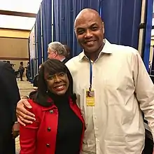 An All-American power forward at Auburn University, Barkley was drafted as a junior by the Philadelphia 76ers with the fifth pick of the 1984 NBA draft. In his rookie season, Barkley was named to the NBA All-Rookie First Team in 1985. In the 1986–87 season, Barkley led the league with the highest rebounding average and earned his first NBA rebounding title. He was named the NBA All-Star Game MVP in 1991, and in 1993 with the Phoenix Suns, he was voted the league's MVP. He competed in the 1992 and 1996 Olympic Games, winning two gold medals as a member of the U.S. national team. In 2000, he retired as the fourth player in NBA history to achieve 20,000 points, 10,000 rebounds, and 4,000 assists.[3] Since his retirement, Tim Duncan, Kevin Garnett, and LeBron James have joined the 20K/10K/4K Club.[4] Barkley is a two-time inductee into the Naismith Memorial Basketball Hall of Fame, being inducted in 2006 for his individual career, and in 2010 as a member of the "Dream Team".[5][6]