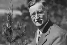 This dramatic change led to more focus on Indiana's forests. In 1901 the Indiana legislature passed House Bill 192, establishing the Indiana State Board of Forestry. Governor Winfield Durbin signed the bill into law.[9] Deam was appointed State Forester in 1909. As part of his job, he moved to Clark State Forest in Clark County. He remained there until 1913, taking a hiatus due to his dislike of political inquiries and campaign contributions. This was when Samuel M. Ralston was elected governor. He resumed the position in 1917 with the election of James P. Goodrich.[8][10] The State Board of Forestry became the Department of Conservation in 1919, headed by Richard Lieber.[8] In 1926, Deam noticed how many younger men received training in forestry. In 1928, at the age of 63, he retired from state forester to concentrate on publishing, only to be rehired as a state forestry researcher later on.[11] Ultimately, this allowed him to invest more time into his books and revisions.