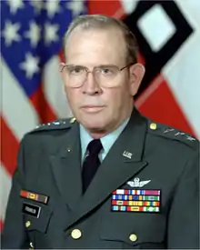Franklin's assignments included tours in Vietnam during the Vietnam War; he commanded first the 116th Attack Helicopter Company, 269th Combat Aviation Battalion, 25th Infantry Division, and later the 2nd Battalion, 20th Field Artillery, 1st Cavalry Division.[2][6][7][8] He served as commander of the 9th Infantry Division Artillery, chief of staff of the 9th Infantry Division, and deputy chief and chief of legislative liaison in the office of the Secretary of the Army.[9][2] In 1984 he succeeded Donald E. Rosenblum as commander of the First United States Army at Fort Meade, Maryland.[2] He was succeeded in this post by James E. Thompson Jr. and retired in 1987.[2]