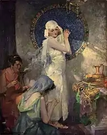 In the beginning of his career, Chambers illustrated a short story series centered on con man, Get-Rich-Quick Wallingford.[4] Throughout his career, he would continue to illustrate short stories for writers, Pearl Buck, Louis Bromfield, Faith Baldwin, and W. Somerset Maugham.[2] These would appear in the magazines, Harper's, Cosmopolitan, Woman's Home Companion, Ladies' Home Journal, and McCall's.[5][3]