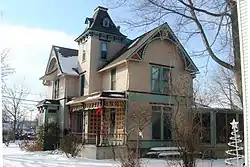 The house is distinctive because of its decorative elements, including the shingling, turned posts on the verandah, and stickwork under the gables.[2] The form of the house (a gabled ell with tower) had been popular regionally and nationally since the 1850s, but by the time this house was built, c. 1890, was much out of fashion.[2]
