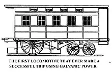 With these funds plus personal resources that took him into debt, Page built and tested the first full-sized electromagnetic locomotive, preceded only by the 1842 battery-powered model-sized Galvani of Scottish inventor Robert Davidson. Along the way, Page constructed a series of motors, revisions of the axial engine having different dimensions and mechanical features, which he tested thoroughly. The motor operated on large electrochemical cells, acid batteries having as electrodes zinc and costly platinum, with fragile clay diaphragms between the cells. Page's 1850 American Association for the Advancement of Science presentation about his progress impressed Joseph Henry, Benjamin Silliman and other leading scientists.[51][50]