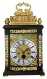 Gretton's spring clocks were usually in an ebony-veneered or ebonized case with little or no decoration, other than the carrying handle. Gretton was, however, an early user of gilt basket-top cases. Most clocks originally stood on ebonized pad feet. Some peak-period spring clocks could be housed in a marquetry or kingwood case.