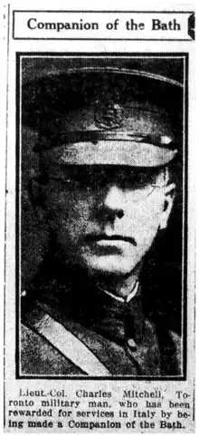 Charles Hamilton Mitchell, CB, CMG, DSO (1872-1941) was a Civil Engineer and an Intelligence Officer of the Canadian Armed Forces in World War I, with the rank of Brigadier-General. He served in France, Italy, and England during the war as an Intelligence Officer, winning several honours, becoming the most decorated Intelligence Officer in Canadian military intelligence history. After the war, he returned to Canada to serve as the Dean of Engineering at the University of Toronto Faculty of Applied Science and Engineering. He helped greatly expand and improve the faculty during his tenure and served in that role until 1941.