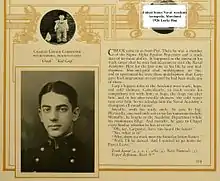 Charles, also known as "Chuck" when younger and "Charlie" when older, was born July 31, 1902, in Greensburg, Pennsylvania.[2][3] He was the first son of Charles C. "Timothy" and Jennie Addell (Wilson) Carpenter. He was a direct descendant of William Carpenter, who emigrated from England to Providence, Rhode Island, in 1635.[4] Carpenter received his early education in the public schools of Wilkinsburg, Pennsylvania, east of Pittsburgh, Pennsylvania. He enjoyed running and track, which he continued through his upper education. He was also a member of the Sigma Alpha Epsilon Fraternity.[1][5]