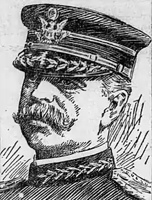 In January 1899, Hodges was recommended for promotion to major by brevet to recognize his heroism in Cuba.[15] During 1899, Hodges performed temporary duty as commander of the army recruiting offices in Seattle and Portland,[16] then commanded the post at Fort Sam Houston, Texas.[17] In July 1900, he was promoted to major.[17] In November 1900, he was assigned to the 17th Infantry Regiment for duty in the Philippines during the Philippine–American War.[18] In August 1901, he transferred from the 17th Infantry to the 23rd Infantry.[19] Hodges continued to serve with the 23rd Infantry after returning to the United States, and he was promoted to lieutenant colonel in August 1903.[1][20] In 1906, Hodges was assigned to command the post at Fort Ontario, New York.[21] In January 1907, he received promotion to colonel.[22]