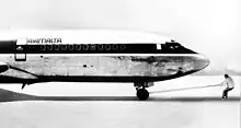 Saliba pulling Boeing 727 airliner in 1970.