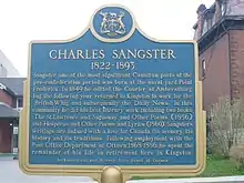 Charles Sangster plaque, Barrie St., Kingston, Ontario. Photo by Alan L. Brown, June 2004.[7]