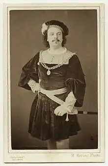In July Santley appeared in Le Nozze at the Crystal Palace. The London autumn season was held at Covent Garden, with Santley's old hero Karl Formes joining the tour cast. The American soprano Minnie Hauk also appeared (in La Sonnambula). During the ensuing tour, Santley sang Tom Tug in Charles Dibdin's The Waterman for the first time, at Leeds. The next season, he sang it twice more in Leeds, and once each in Sheffield and Bradford. The airs from The Waterman 'The jolly young waterman' and 'Then farewell, my trim-built wherry' were sung by Santley to acclaim.[2]