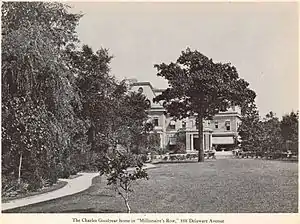 The Charles W. Goodyear House is in the Delaware Avenue Historic District, a federally designated historic district listed on the National Register of Historic Places since 1974. The two block-long historic district is only a fraction of the former "Millionaires' Row" of Delaware Avenue.[2]