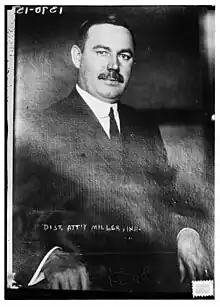 After leaving office, Miller remained in Indianapolis to practice law. From 1909 to 1913, Miller was a U.S. Attorney for the District of Indiana. While serving as U.S. Attorney, Miller wrote a letter to U.S. Attorney General George W. Wickersham questioning the involvement of the Justice Department in the prosecution of the 1911 Los Angeles Times bombing.[2][7][3]