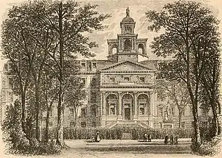 The Charleston Orphan House was established on October 18, 1790 by the City Council as the first municipal orphanage in the United States.[1][2] The orphanage primarily served poor white children and formed one of South Carolina's earliest educational systems. Before the Orphan House was established, St. Phillip's and St. Michael's parishes provided for destitute children. They ordered men who abandoned their families to pay child support and paid women to care for young children who did not have families. When Charleston was incorporated in 1783, the city had to take on the burden of caring for these children. The city wanted to establish an orphanage as a centralized site of care to save on expenses.[3]