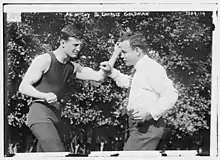 Goldman, who was Jewish, grew up in the Red Hook section of Brooklyn.[2] The area was then known as a tough neighborhood, and Goldman learned how to use his fists at an early age to protect his older brother Sam. It is therefore not surprising that Goldman became a professional boxer, as a bantamweight. He was a protégé of world champion "Terrible" Terry McGovern, and claimed to have adopted the habit of wearing a derby hat from McGovern.[3] He fought his first professional fight, at the age of 16, in a Brooklyn, New York saloon.