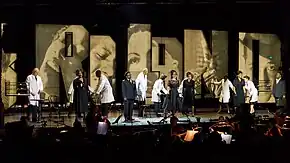 The world premiere took place at Philadelphia's Perelman Theater June 5, 2015, conducted by Corrado Rovaris. The original production featured direction by Ron Daniels, set design by Riccardo Hernandez, costume design by Emily Rebholz, lighting design by Scott Zielinski. It was performed the following April at Harlem's Apollo Theater,[1] a performance which was then broadcast nationally. It has also been performed at Madison Opera (February 2017),[2] Lyric Opera of Chicago (March 2017),[3] Hackney Empire and English National Opera (June 2017),[4] Atlanta Opera (September 2018),[5] Arizona Opera (November 2018),[6] Seattle Opera (February 2020),[7] Pittsburgh Opera (April 2021), Dayton Performing Arts Alliance (October 2022), New Orleans Opera Association (January 2023), upcoming productions include Indianapolis Opera (March 2023).
