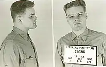 Starkweather was convicted, after the jury deliberated for only 22 hours, for the murder of Jensen, the only murder for which he was tried. On May 23, 1958, he was sentenced to death, and Starkweather was executed in the electric chair at the Nebraska State Penitentiary in Lincoln, Nebraska, at 12:04 a.m. on June 25, 1959.[37] Half an hour before the execution, the doctor who was supposed to pronounce Starkweather dead, B.A. Finkel, himself suffered a fatal heart attack.[38] Starkweather gave no last words but in a letter from prison to his parents, wrote: "but dad I'm not real sorry for what I did cause for the first time me and Caril have (sic) more fun."[35] He was reportedly indifferent about his impending death and had become resigned to his fate.[22]