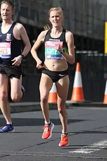 Charlotte Arter (born 18 June 1991) is a British distance athlete. Arter comes from Cumbria but represents Wales in athletics, having qualified via the residency rule. Arter previously worked for Cardiff University, managing their high performance athletics programme.[1] She is the current Welsh record holder in the half marathon.[2] She is the current joint women's Parkrun record holder setting a time of 15 minutes and 49 seconds at Cardiff Parkrun on 1 February 2020.[3][4] She was the 2018 British 10,000m champion.[5]
