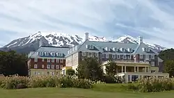 The Grand Chateau, also known as the Chateau Tongariro, is a hotel and resort complex located close to Whakapapa skifield on the slopes of Mount Ruapehu, within the boundaries of Tongariro National Park, New Zealand's oldest national park. It is also close to the volcanic peaks of Mount Tongariro and Mount Ngauruhoe. The building was completed in 1929 and, despite extensive refurbishment, still retains much of the style of the pre-Depression era. It is listed by Heritage New Zealand as a Category 1 historic place.[1] The Chateau Tongariro Hotel closed permanently on 5 February 2023, largely because the building has significant seismic risks.