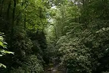 One of the largest tributaries in the Chattooga basin that flows mainly through private lands is Stekoa Creek, which flows primarily southeast for approximately 18 miles (29 km)[1] from its headwaters in Mountain City, Georgia, through Clayton, Georgia, to its mouth at the Chattooga River. Stekoa Creek has been identified as the single greatest threat to the Chattooga's water quality. This is due primarily to raw sewage leaking from the City of Clayton's old sewage collection system, overflowing storm drains, runoff laden with sediment, poor agricultural practices, failing septic systems, and illegal dumping.[3] Non-profit organizations, such as the Chattooga Conservancy, have made improving water quality in Stekoa Creek a top priority.[3] The Stekoa Creek Basin is approximately 45 square miles (120 km2) in size.