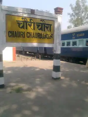 Chauri Chaura railway station is a small railway station in Gorakhpur district, Uttar Pradesh. Its code is CC. It serves Chauri Chaura city. The station consists of two platforms. The platform is not well sheltered. It lacks many facilities including water and sanitation.[1][2][3][4]
