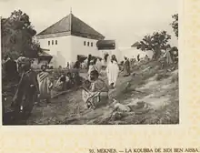 The rituals of the Issawi order are performed here.[6] The mausoleum is also the focal point of an annual moussem (a type of Sufi religious festival).[6] Unlike Mawlid, the festival here was brutal in nature, and it was historically known for its displays of self-mutilation.[6] The religious rituals in the festival are intertwined with musical and joyful celebrations that are sometimes violent, including rolling around and drinking blood of animal sacrifices.[7]