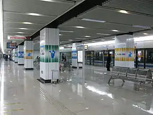 Chengshan Road (Chinese: 成山路; pinyin: Chéngshān Lù) is an interchange station on Lines 8 and 13 of the Shanghai Metro. This station opened as part of the southern extension of Line 8 on 5 July 2009. It became an interchange station with the opening of phases two and three of Line 13 on 30 December 2018.[1] The station is located in Shanghai's Pudong New Area.