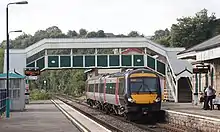 The local rail service is sporadic, running an hourly service in each direction. A local campaign has been established, with the support of the local MP, Welsh Assembly members, County Council and town council, to improve rail services to the town.[8][9] In May 2011, CrossCountry commenced a year-long trial of stopping its Cardiff-Birmingham-Nottingham services at the station on weekdays and Saturdays. In December 2011, it was reported that the trial would be extended until at least December 2012.[10]