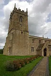 The chancel arch was probably built in about 1500[3] or the early part of the 16th century.[2] Two of the windows in the north wall of the north aisle and the battlements at the top of the tower are 18th-century additions.[2] The church tower had three bells until 1842 when one was recast, two more were added to make a ring of five and all were rehung.[4] In 2006 John Taylor & Co recast one of the 1842 bells, cast another to increase the ring to six and rehung them all.[4] Cherington House may be 17th-century.[3][5] Cherington Mill is on the River Stour.[3]
