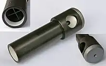 The tool was first described by F. J. Cheshire in 1921.[1] It was repopularized in the 1980s and is now mass-produced. Amateur astronomers in particular use them to collimate reflecting or refracting telescopes.[2][3] Some modern models of Cheshire eyepieces in common use include extended sight tubes and are equipped with crosshairs. When inserted into a Newtonian telescope whose primary mirror is marked in its center, such aids allow the user to adjust the position and tilt of both the secondary and the primary mirror.[4] It can also be used to verify focuser alignment.