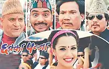 Chhakka Panja (Nepali: छक्का पञ्जा) (transl.Six, Five) is a 2016 Nepalese comedy-drama film directed and produced by Deepa Shree Niraula.[1] The film is Niraula's directorial debut and features an ensemble cast of Priyanka Karki, Deepak Raj Giri, Jeetu Nepal, Kedar Ghimire, Buddhi Tamang, Shivahari Poudel, Barsha Raut and Namrata Sapkota .[2][3][4][5][6][7] The film is first part of Chakka Panja series and tells the story of Raja (Deepak Raj Giri),a rich but illiterate man and his group of friends Ateet(Shivahari Poudel), Saraswati(Jitu Nepal), Magne(Kedar Ghimire) and Buddhi(Buddhi Tamang), Raja who is devoted to the chase gives in to family pressure and gets married but different events unfolds in his and his group of friend's life that gives rise to comedy of errors and situations. The film received highly positive reviews for its screenplay and story, performances, humor and its social setting and message. The film was an " All Time Blockbuster " at the box office breaking several records at the box office was the highest grossing Nepali film of all time until it was overtaken by its 3rd part. However, due to piracy problems, the movie was released on YouTube.[8][9] Due to the piracy, the international screening of the movie was highly affected.[10] The film had three sequels :- Chhakka Panja 2 Chhakka Panja 3 and Chhakka Panja 4, all of which were commercial blockbusters.Thus, it is the highest grossing Nepali movie franchise.