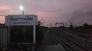 Chiang Rak Noi station (Thai: สถานีเชียงรากน้อย) is a railway station in Chiang Rak Noi Sub-district, Bang Pa-in District, Phra Nakhon Si Ayutthaya. It is a class 2 railway station 46.01 km (28.6 mi) from Bangkok railway station. Chiang Rak Noi station is also the location of a TPI Polene cement depot.