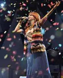 She advanced to the final of the competition without ever being in the bottom two.[19] During the final, which was held in two consecutive nights for the first time in Italy,[20] she also dueted with British singer Mika, singing "Stardust" from his album The Origin of Love.[21] On 7 December 2012, she was announced the winner of the competition.[22] During the final round, she beat the runner-up Ics for 718,658 televotes to 244,564.[23] As a result, she received a recording contract with Sony Music Italy as a prize, with a stated value of €300,000.[24]