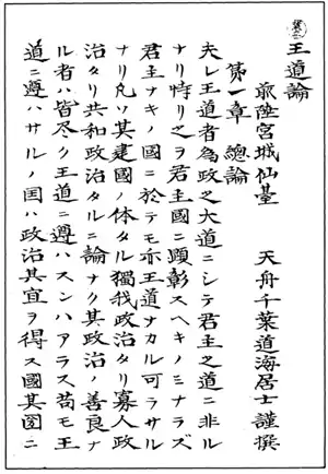 6. 1 2 3 4 5 Richard Devine (1979), "The Way of the King: An Early Meiji Essay on Government", Monumenta Nipponica 34 (1), 49–72