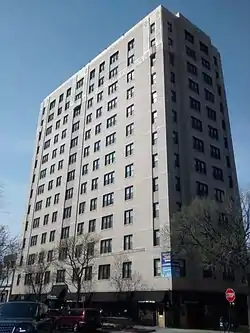 The Chicago Beach Apartments, built in 1929, are located at 5100 South Cornell Avenue in Chicago, USA.[2] Landfilling and other reconfiguration of the lakefront means that the building is not as close to a beach as it once was. Currently known as Scholars Corner Apartments, the building was added to the National Register of Historic Places on May 14, 1986.[3]