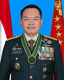 The Chief of Staff of the Indonesian Army (Indonesian: Kepala Staf TNI Angkatan Darat, abbreviated KSAD or KASAD) is the highest position in the Indonesian Army. The position is held by the four-star General appointed by and reporting directly to the Commander of the Armed Forces. Chief of Staff is assisted by the Vice Chief of Staff of the Indonesian Army, which the position is held by a three-star General.[1]
