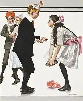 Children Dancing at a Party, produced by Norman Rockwell, was used as the cover for the January 26, 1918 issue of The Saturday Evening Post.[1] This painting has also been called Boy Stepping on Girl's Toe and Pardon Me. The original painting, oil on canvas measuring 23x19 inches, is in the collection of the National Museum of American Illustration.