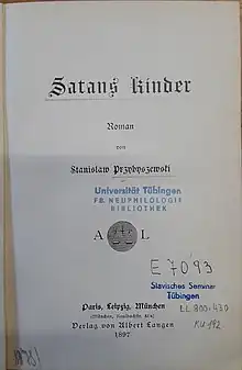 1. Przybyszewski, Stanisław (1897). Satans Kinder: Roman (in German). Albert Langen.