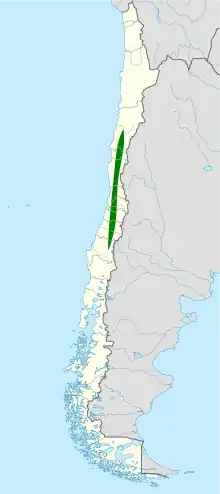 The crag chilia is endemic to north-central and central Chile. Subspecies O. m. atacamae is found from Huasco Province in the Atacama Region to the Coquimbo Region. O. m. melanurus is found further south, between San Felipe de Aconcagua Province in the Valparaíso Region and Colchagua Province in the O'Higgins Region.[3]