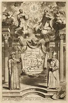 Kircher's work is an encyclopedia about the Chinese empire containing accurate cartography and illustrations that elucidate the vivid descriptions found in the text. The volume is a cultural account of China ranging from religious practices and social customs over languages to China's natural wonders, such as exotic plants and animals.[9] By collecting and compiling information taken from fellow Jesuits including Matteo Ricci, Martino Martini, Johann Adam Schall von Bell, Johann Grueber and Heinrich Roth, Kircher achieves to create an authentic secondary study on Chinese people, nature and mythology.[10]