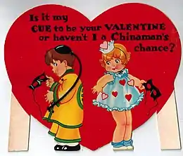 In describing a potential race between a bicyclist and a thoroughbred racing horse in 1893, The World quoted a horse expert as saying "The bicyclist would win sure ... I don't think the horse would have a Chinaman's chance to beat him."[24] The capitalized term "Chinaman" had become "thoroughly entwined with anti-Chinese racial animus" by the early 20th century and the phrase "Chinaman's chance" carried the same pejorative connotations, alluding to the low probability of success resulting from "the endless social barriers that were thrown up against Chinese immigrants seeking opportunities to advance".[28]