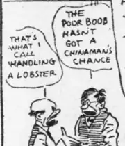 23. Tad (April 30, 1914). "Indoor Sports". San Francisco Call. That's what I call handling a lobster / The poor boob hasn't got a Chinaman's chance