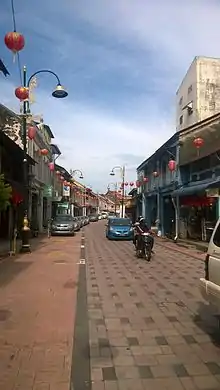 Kampung Cina is the main Chinese settlement in Kuala Terengganu, situated near the heart of Kuala Terengganu city centre. In 1719, the Chinese village settlement had more than 1000 house compared from its today row of pre-war Chinese shophouses of that which only dated as far as 200-year or its earlier dated that are recorded by foreigners like Alexander Hamilton and Captain Joseph Jackson who visited the Chinese settlement while in the Kuala Terengganu town during 1719, and other like J. Newbold in 1893, Munshi Abdullah in 1836, and more.[1] The great fire in early 1880s destroyed a large part of the area and subsequently, many of the houses were rebuilt.[2][3] Sunday, 18 Sep 2022 there was also a fire accident at around 8 pm.[4]