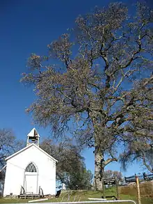 Chinese Camp is the location and subject of California Historical Landmark #423, dedicated on March 4, 1949.[5][6] The Saint Francis Xavier Roman Catholic Church, established in 1855,[7][8] making it the oldest church in the county. The church was renovated in 1949,[7] by John Nicolini but has since fallen into disrepair. The church itself is owned by the Stockton archdiocese.