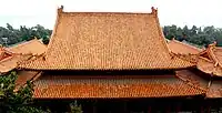 Glazed tiles (Chinese: 琉璃瓦) have been used in China since the Zhou Dynasty (c. 1046 – 256 BC) as a material for roofs. During the Song Dynasty, the manufacture of glazed tiles were standardized in Li Jie's Architecture Standard.[1] In the Ming Dynasty and Qing Dynasty, glazed tiles became ever more popular for top-tier buildings, including palace halls in the Forbidden City, and ceremonial temples (for example the Heavenly Temple).